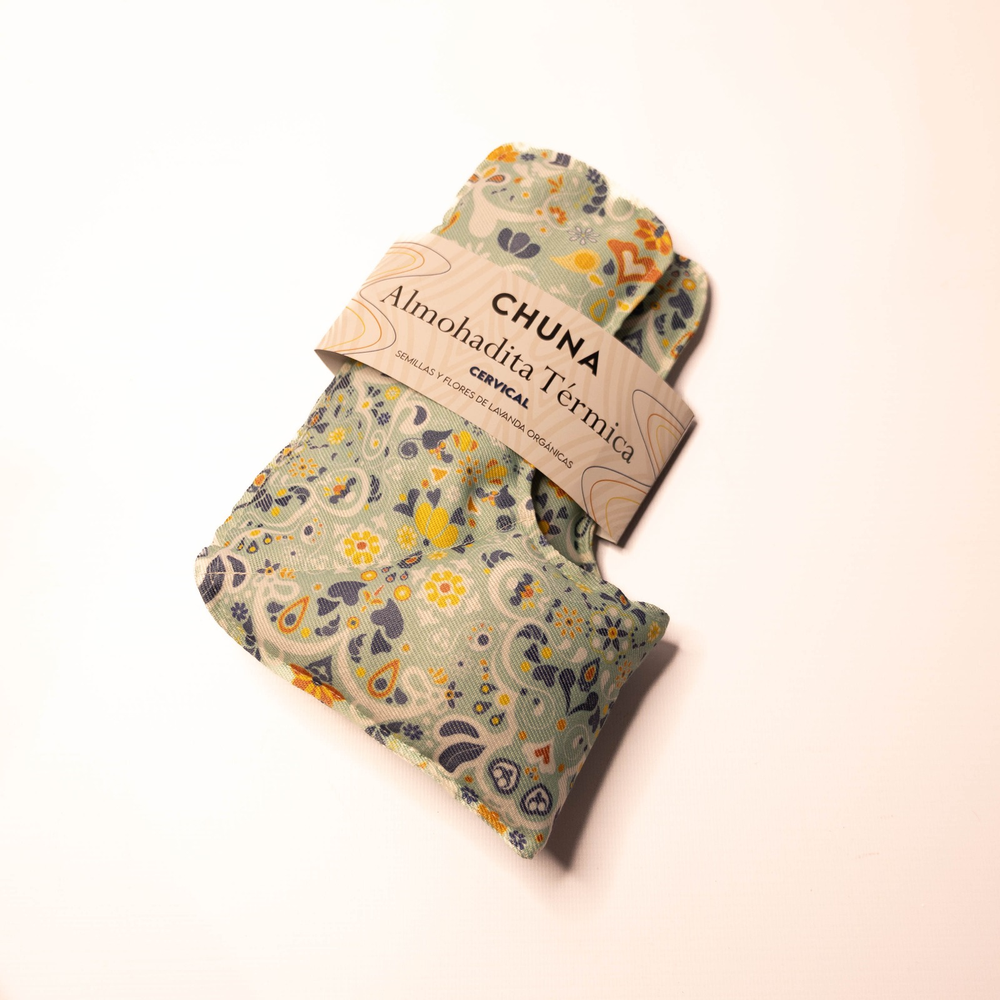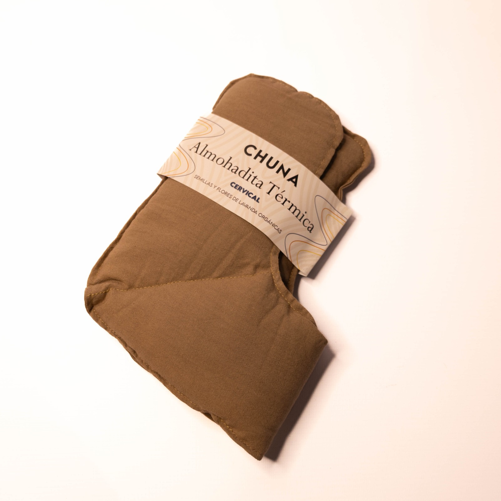 Almohadilla cervical, rellena de semillas y flores de lavanda orgánicas. Diseñada para abarcar el área de la espalda alta, este producto esta ideado para descontracturar la zona cervical y la parte superior del torso. La distribución del peso de sus semillas contribuye a mejorar la postura y ayuda a que los hombros desciendan y toda la espalda se distienda. Tamaño: 38 x 26 cm. Modo de uso: En microondas, calentar entre 1 y 2 minutos. En el horno, calentar el horno, apagarlo e introducir la almohadilla entre 5 y 10 minutos envuelta en papel de aluminio. En frío, colocar la almohadilla dentro de una bolsa plástica e introducirla en el freezer durante 2 horas. Cuidados: No sobrecalentar. No mojar. Guardar en bolsa plástica para evitar la humedad.