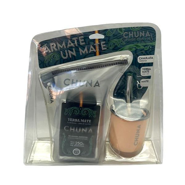 Set que incluye novedoso packaging Incluye Chaulata transparente 350grs, con cierre en combinación con el color de mate, +Yerba Mate Chuna 250grs + Mate Anubis + bombilla Novedoso set para regalar y compartir un delicioso momento. Medidas: Alto 27cm, Ancho 27 cm, Base 9cm Peso: 480grs