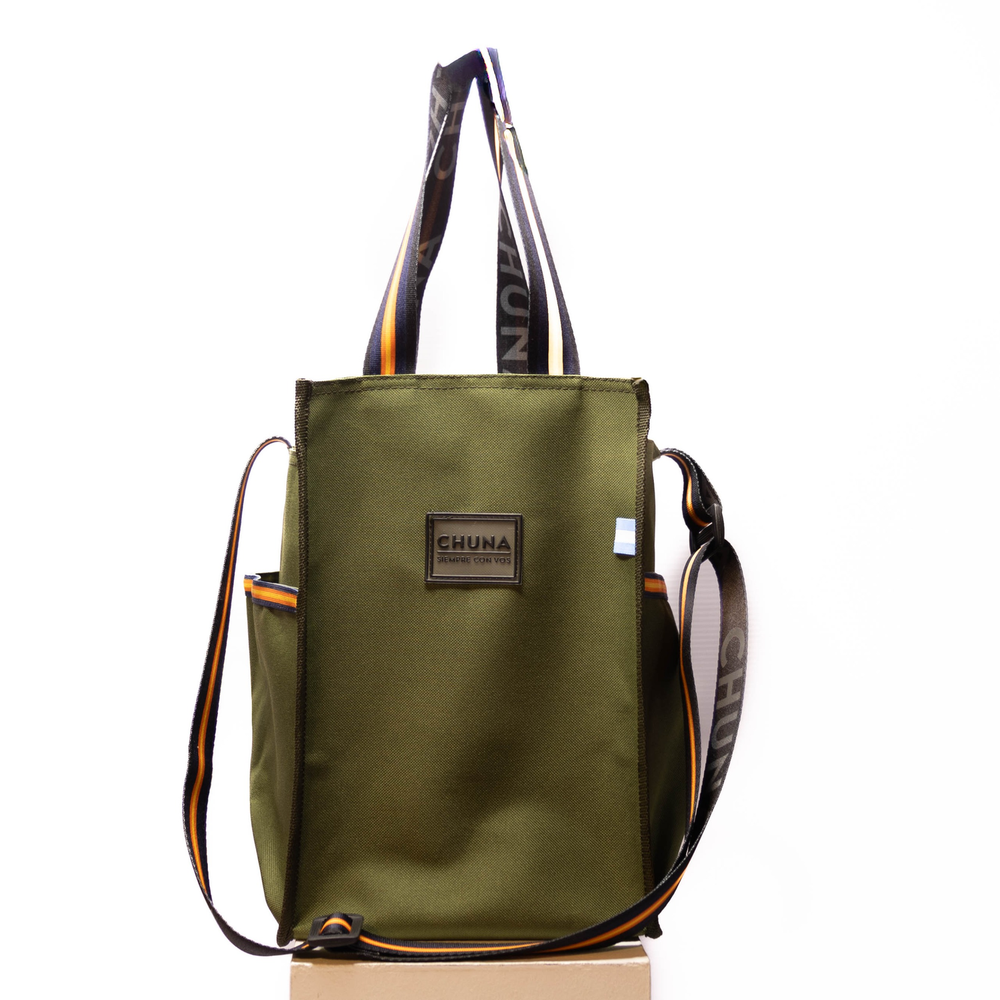 Bolso confeccionado en tela PV (mezcla de poliéster (P) y víscosa (V)). Esta combinación de fibras es muy popular debido a sus características combinadas de durabilidad, suavidad y fácil cuidado. Con compartimento para guardar termo y efectos personales. Correa regulable. El Bolso matero tambien es ideal para: El mercado, por su capacidad y organización te permite llevar tus compras de forma cómoda,. Para la oficina, con suficiente espacio para llevar documentos, agenda, bolígrafos y otros accesorios de oficina.