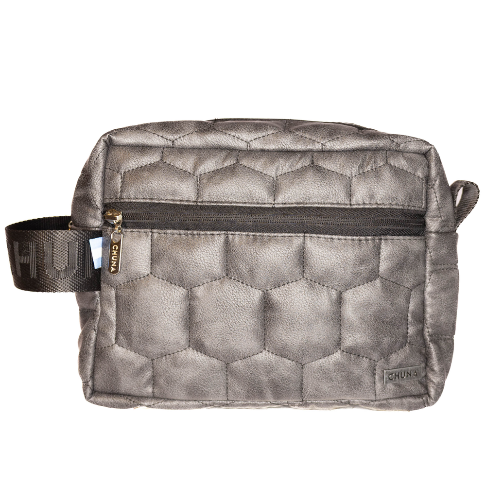 Diseñado para el hombre moderno, este Necessaire combina elegancia y practicidad. Confeccionado con materiales resistentes y de alta calidad, es ideal para organizar tus artículos de cuidado personal. Diseñado en Poliéster de alta resistencia, forrado y acabado matelasseado con diseño hexagonal. Cierre superior, bolsillo frontal con cierre, manija de agarre. Diseño que cabe perfectamente en tu mochila o maleta