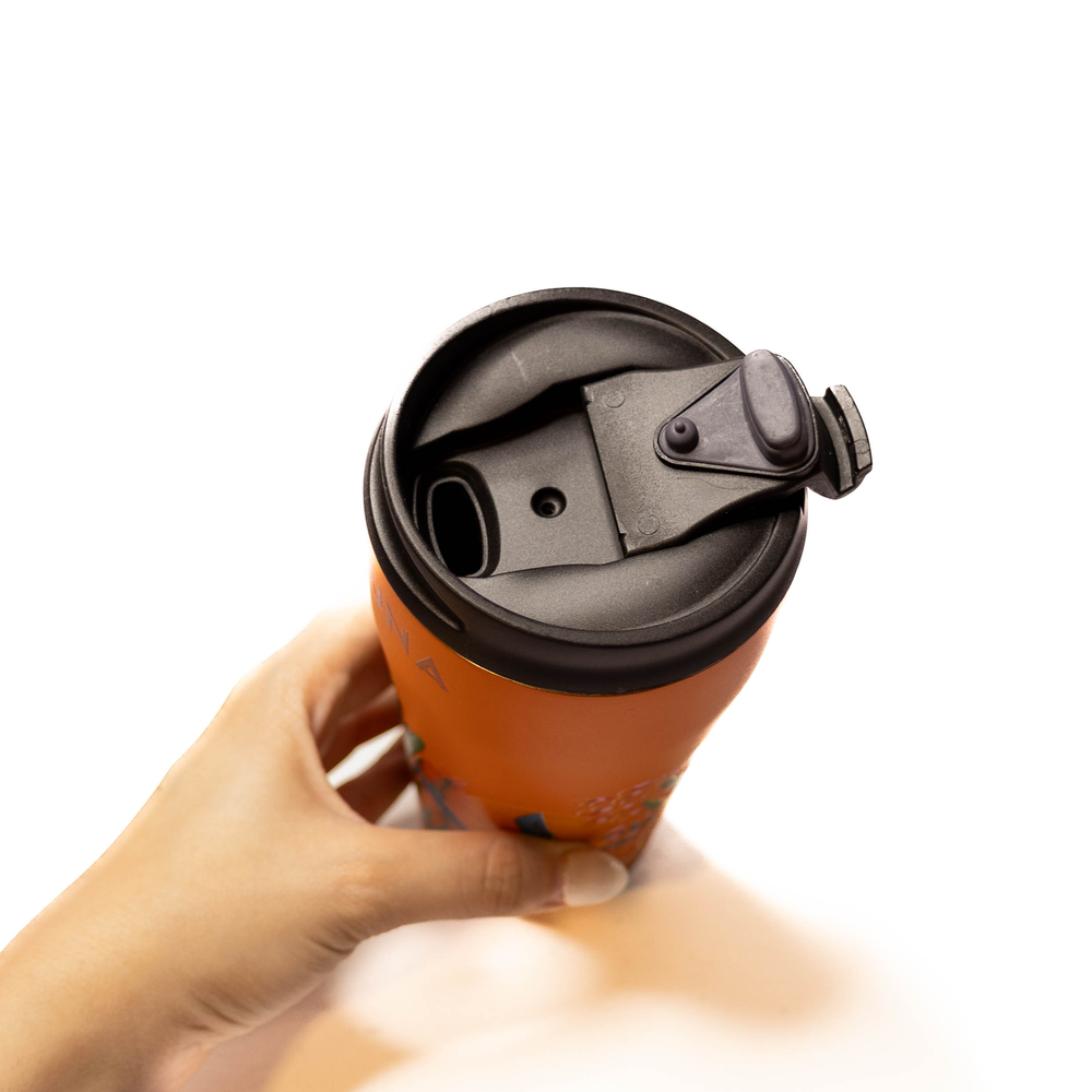 Vaso térmico doble pared de acero inoxidable. Capacidad 400 ml. Apto para bebidas frías y calientes. Base antideslizante. Fácil de usar con una sola mano. Tapa segura a prueba de perdidas.