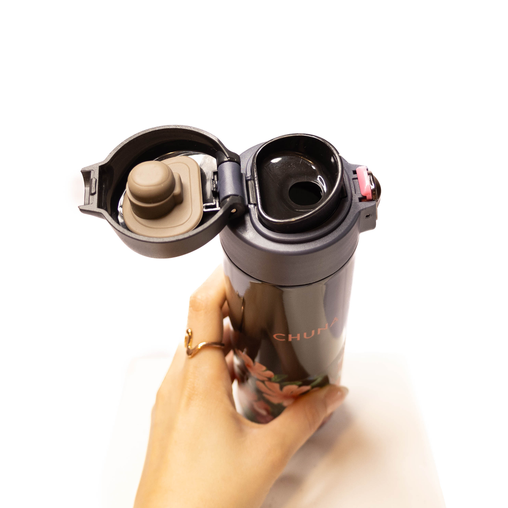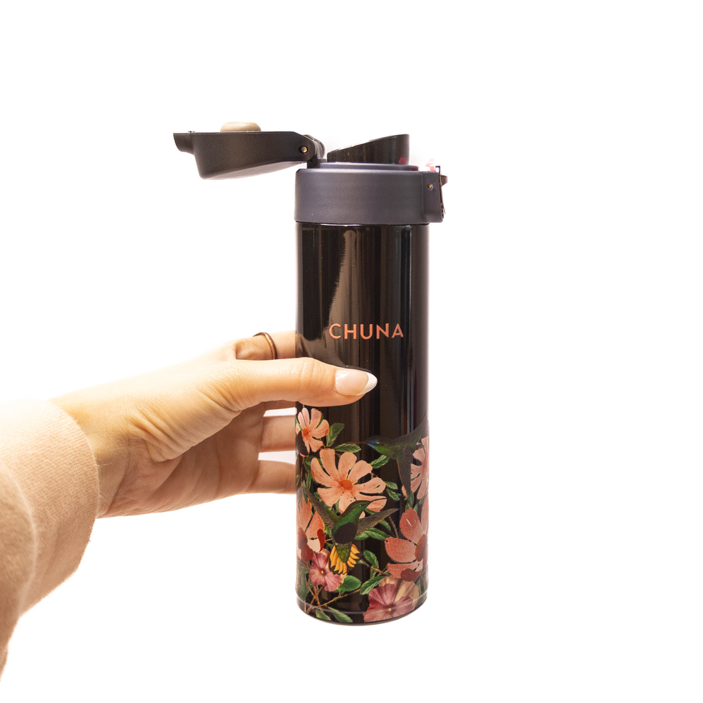 Practica botella pensada para acompañarte en cada actividad. Capacidad 500ml Diseñada con botón de seguridad para que no se abra solo, manteniendo tus bebidas en la temperatura ideal durante horas.