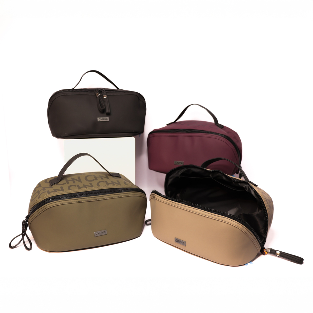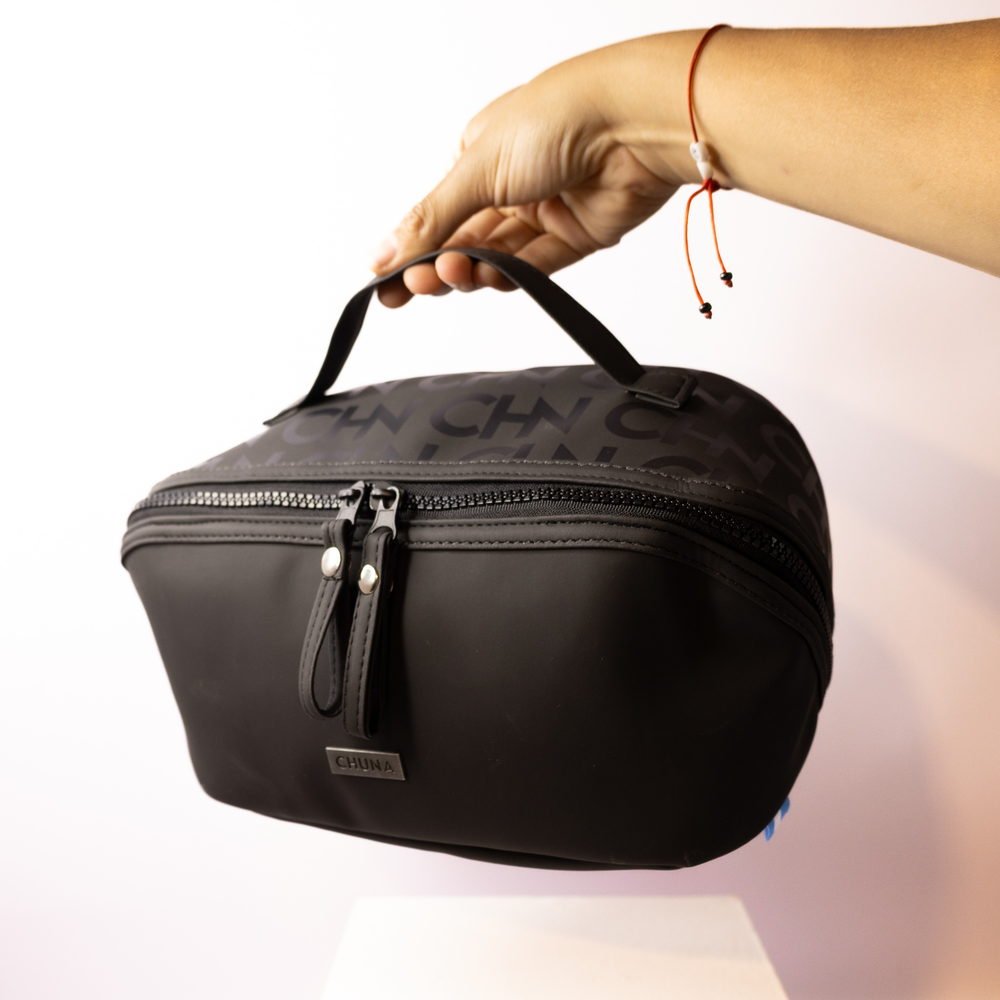 Este necessaire tipo cofre combina diseño y funcionalidad en una sola pieza. Confeccionado en tela engomada, forrado en tela Cire, es impermeable, resistente y fácil de limpiar, ideal para acompañarte en viajes, salidas o el uso diario. Se complementa con un cierre diagonal que permite una apertura amplia y cómoda para acceder fácilmente a todo lo que llevás. En su interior, encontrás una división con cierre, perfecta para organizar mejor tus productos o separar lo más delicado. La manija superior facilita el traslado y lo convierte en el compañero ideal para valijas, bolsos o como accesorio individual.