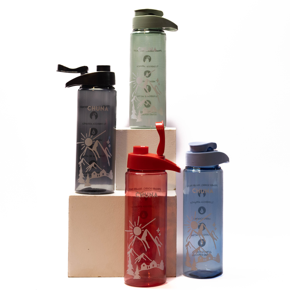Botella de plástico con mensajes motivacionales y cierre antivuelco Capacidad 750 ml
