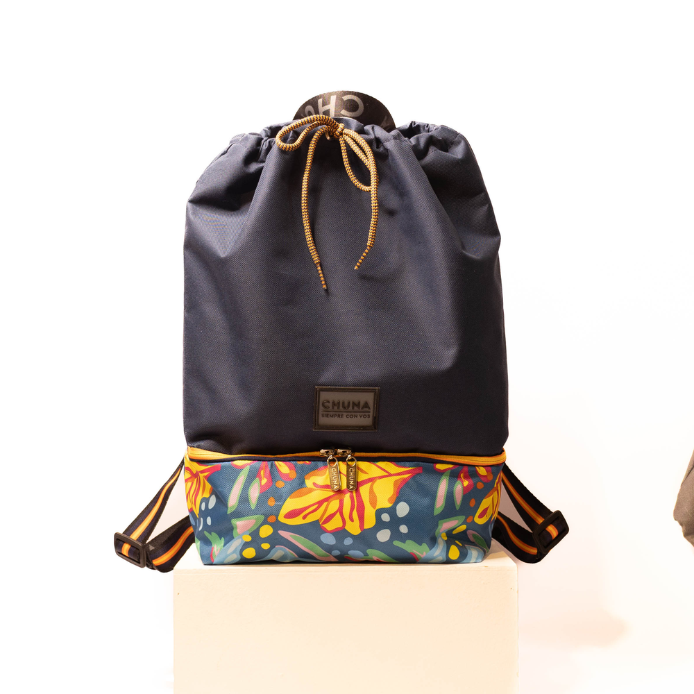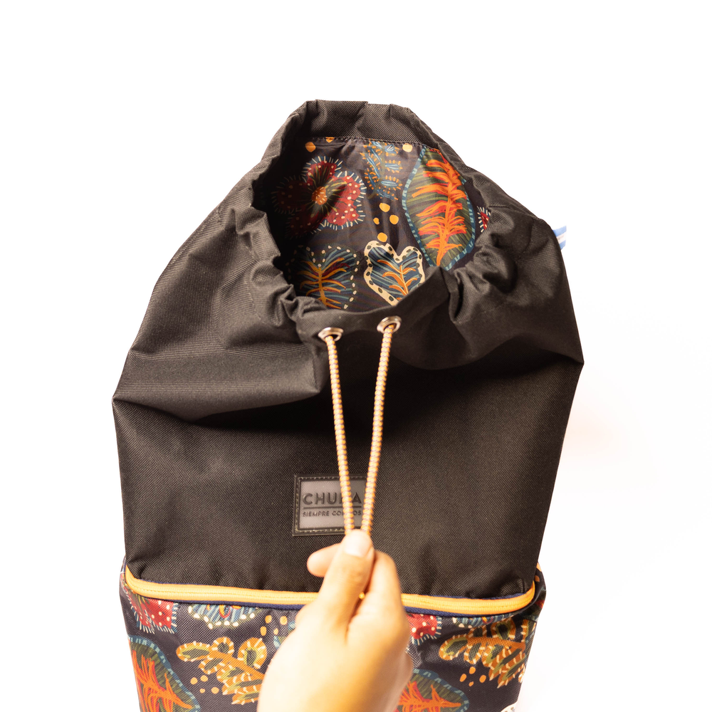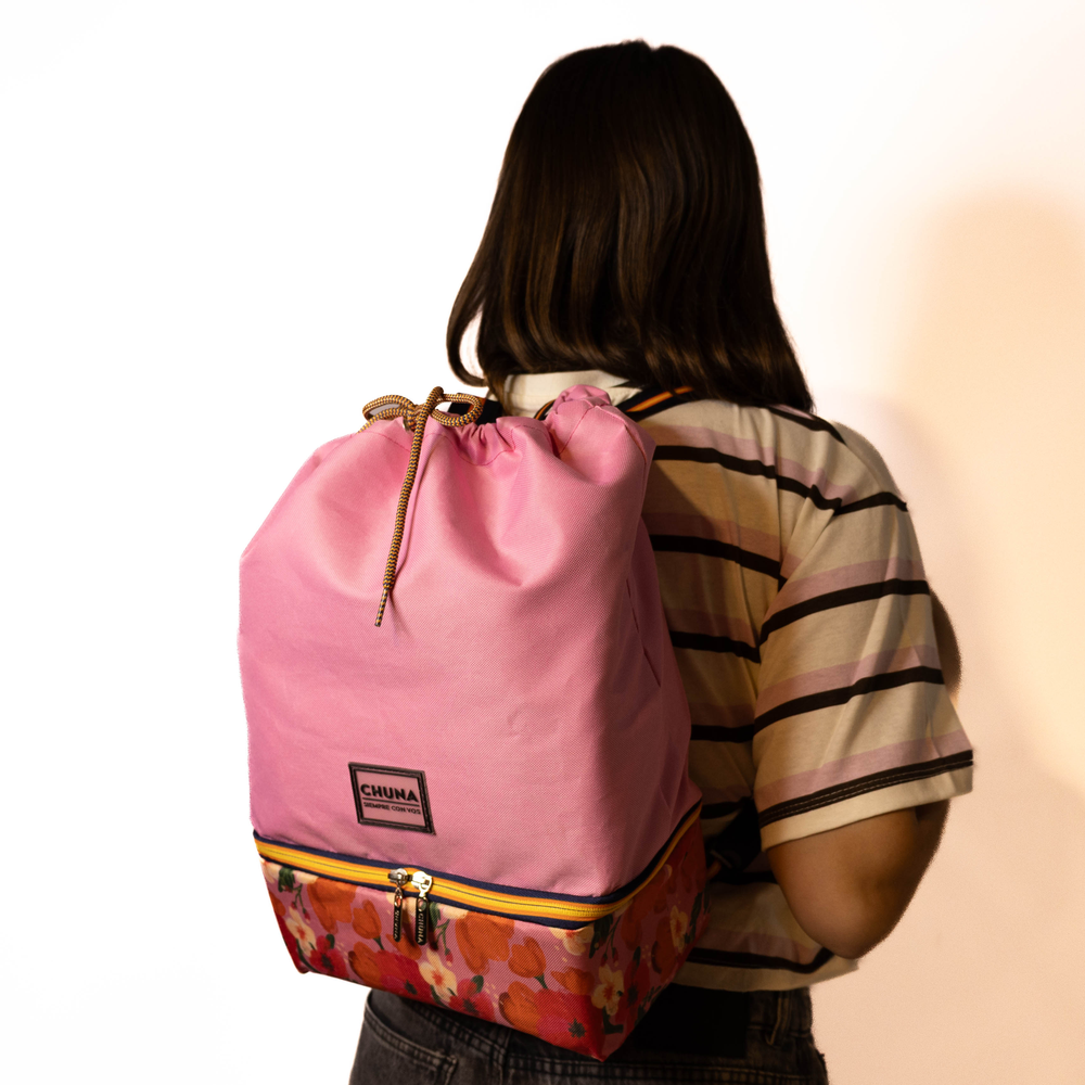 Mochila multiuso con compartimento lunchera térmico incorporado Mochila funcional y moderna diseñada para uso diario, que combina estilo y practicidad. Espacio principal amplio para libros, ropa o accesorios personales. Compartimento inferior separado, especialmente diseñado como lunchera térmica, ideal para transportar alimentos y bebidas pequeñas manteniendo su temperatura. Cierre principal con cordón ajustable en la parte superior para mayor capacidad y ajuste. Cierre doble en la parte inferior para la lunchera. Correas: Dos tirantes ajustables con hebillas, acolchados para mayor comodidad en el transporte.