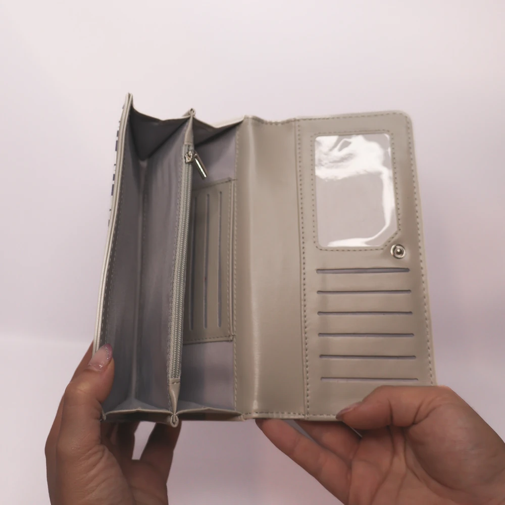 Billetera Verbena Combina diseño moderno y practicidad. Es el accesorio perfecto para el día a día. Confeccionada con exterior en PU resistente e interior en ecocuero suave, ofrece una textura agradable al tacto y una gran durabilidad. Amplio interior dividido para billetes, documentos y bolsillo con cierre. Múltiples ranuras para tarjetas y una ventana transparente para DNI o foto. Medidas: 19 cm de largo, 10 cm de ancho