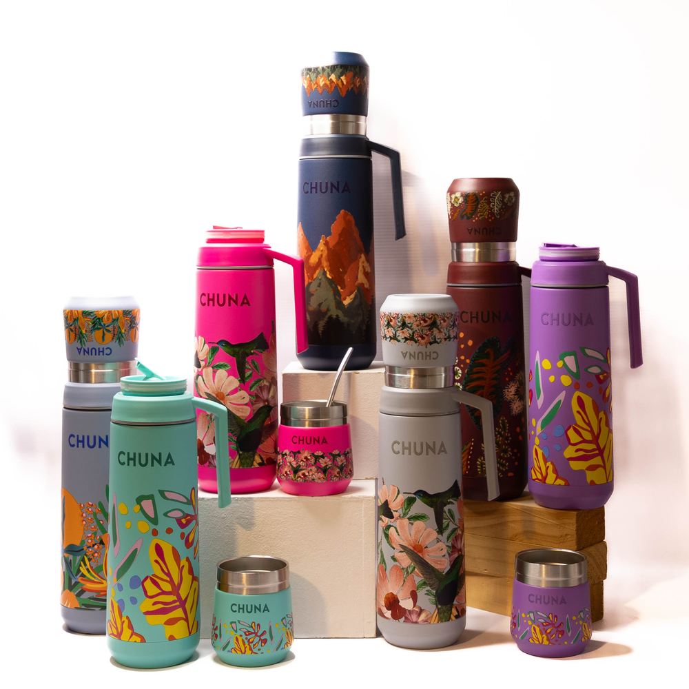 Set Termo Mate Estampado de Acero Inoxidable 1 L Practicidad, resistencia y diseño en un solo termo. Nuestro Termo de Media Manija está pensado para acompañar cada salida, viaje o jornada de trabajo. Cuenta con una tapa-manija reforzada que facilita el agarre y transporte, y un tapón con pico vertedor que permite servir con precisión sin derrames. El termo incluye en su parte superior un mate combinado, con una estampa que continúa el diseño del termo, logrando un set completo, práctico y visualmente armonioso.