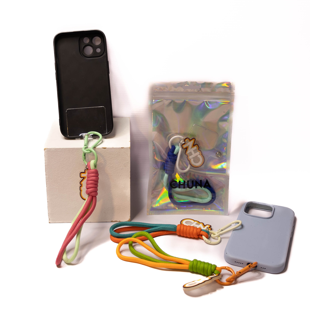 Correa para celular fabricada con cordón doble de alta resistencia. Presenta un diseño colorido con nudos decorativos tipo “serpiente” que aportan estilo y mayor agarre. Incluye un aro plástico que permite sujetarla al teléfono mediante una lámina/pegatina ultra delgada que se coloca entre el celular y la funda. Presentacion: Todas nuestras correas llevan Logo CHN en pvc y bolsita transparente con cierre hermetico tipo Doy pack.