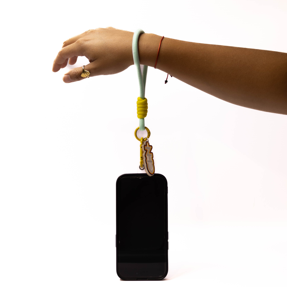 Correa para celular fabricada en cordón con una estructura de red flexible. Presenta un diseño colorido con nudos decorativos tipo “serpiente” que aportan estilo y mayor agarre. Incluye un aro plástico que permite sujetarla al teléfono mediante una lámina/pegatina ultra delgada que se coloca entre el celular y la funda. Presentacion: Todas nuestras correas llevan Logo CHN en pvc y bolsita transparente con cierre hermetico tipo Doy pack.