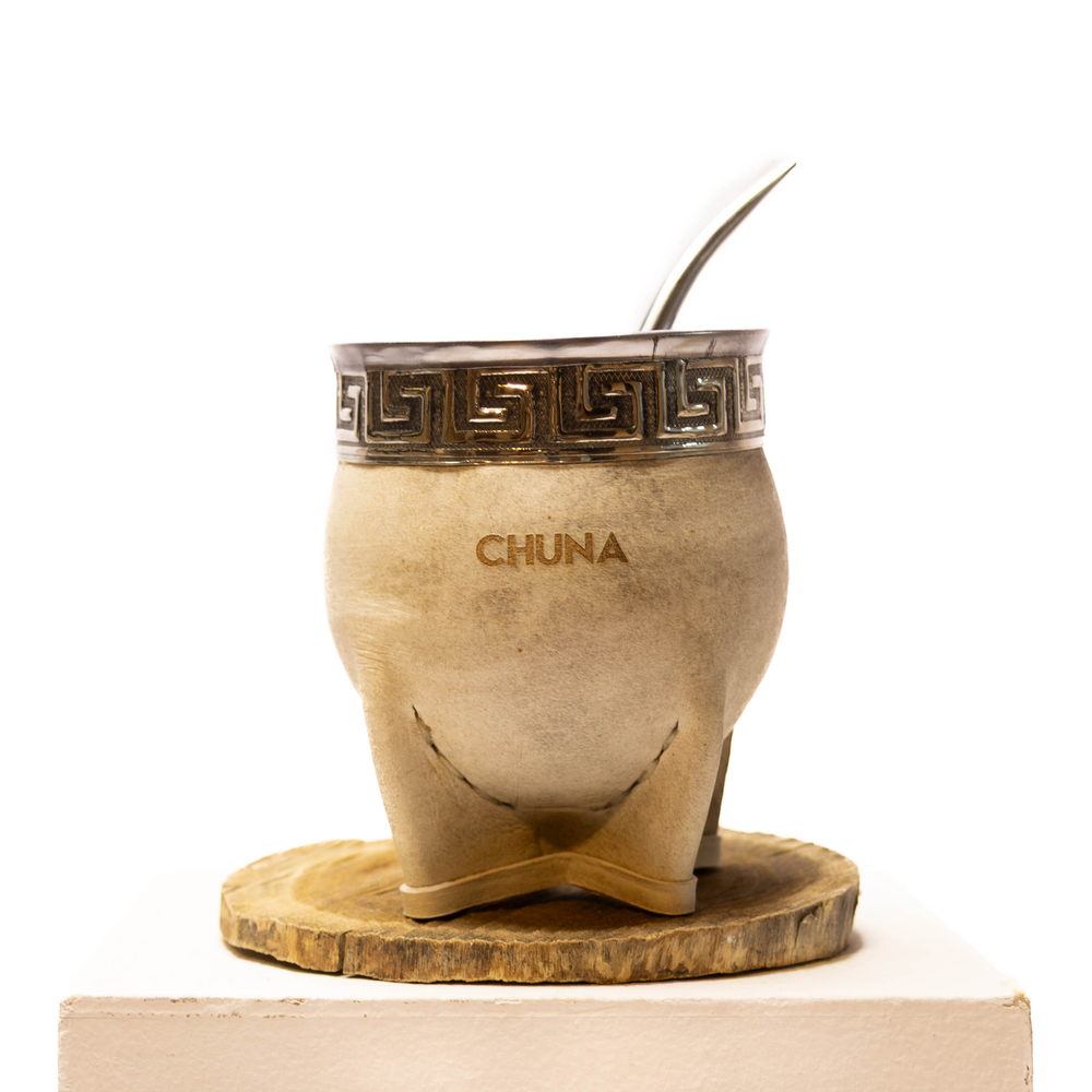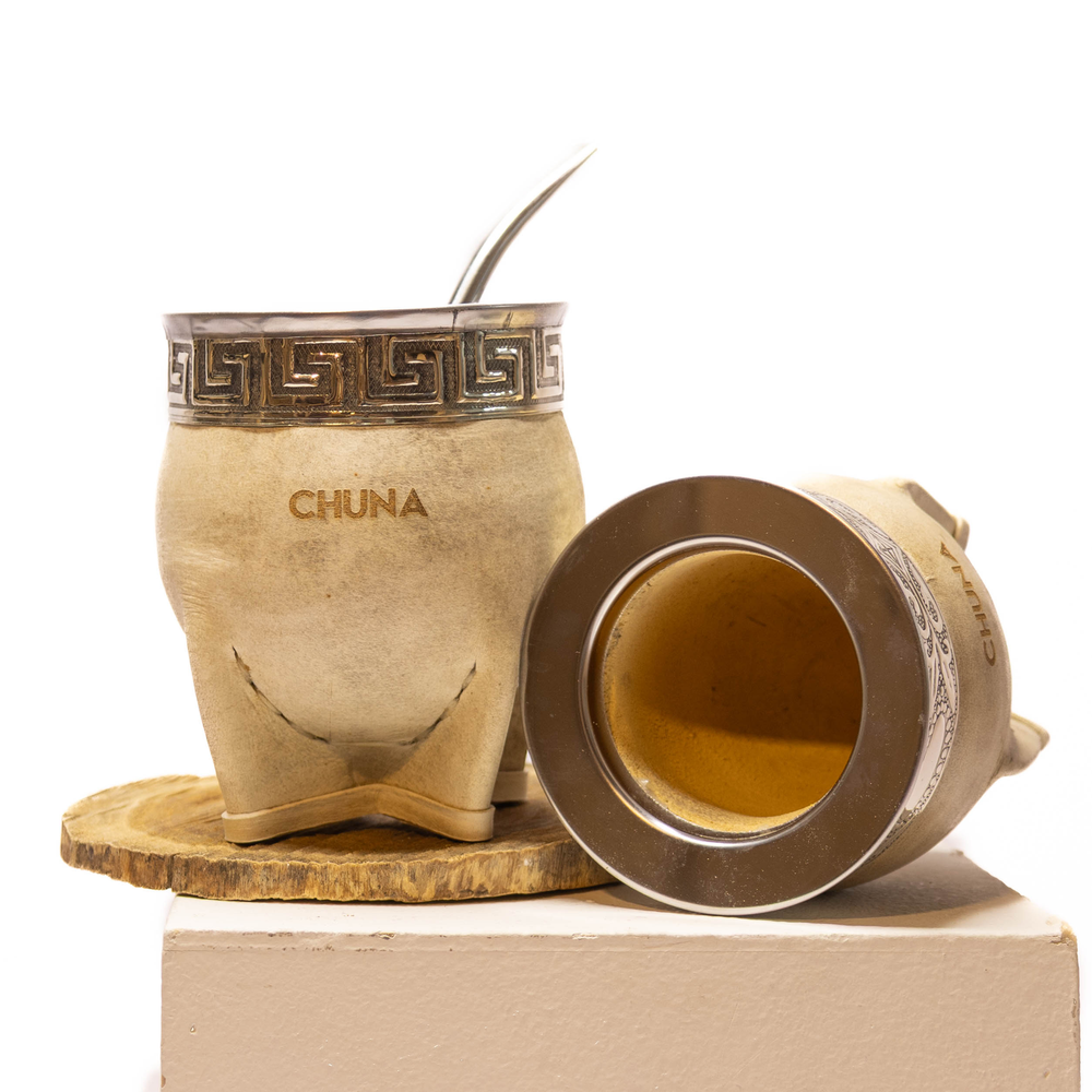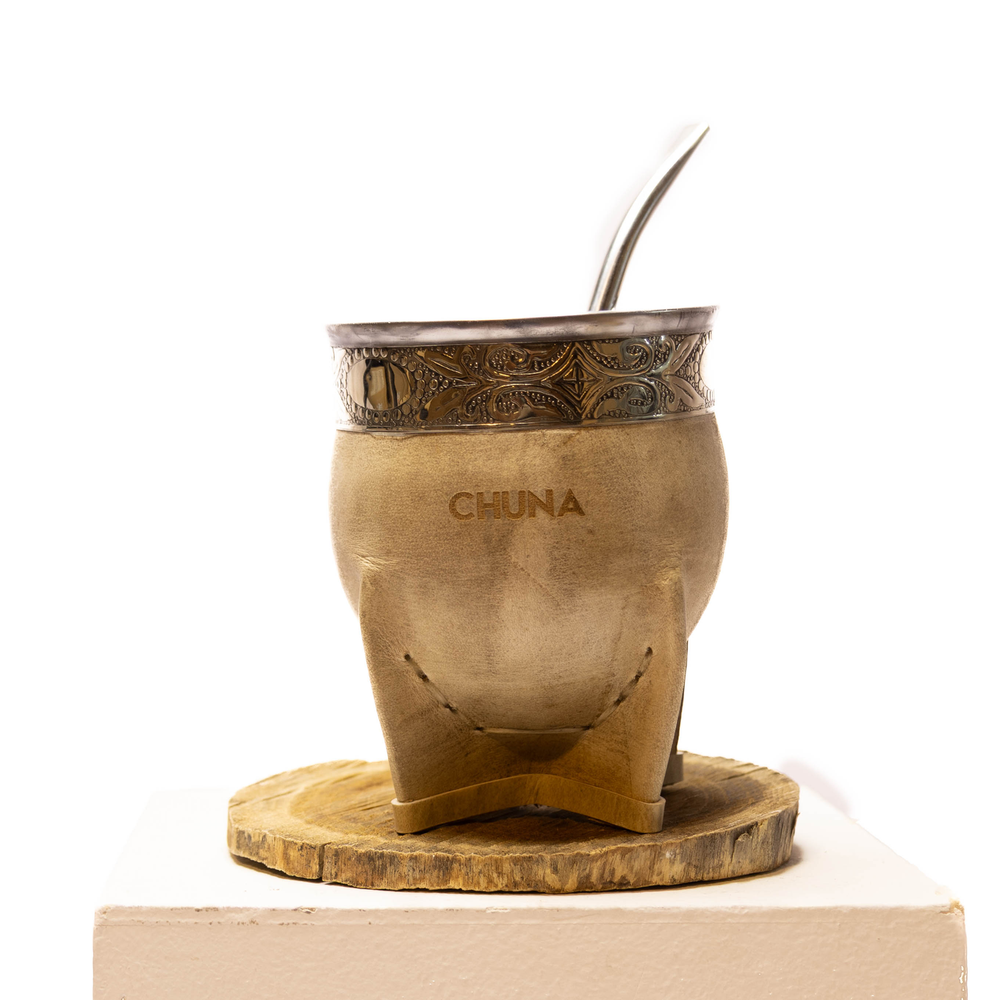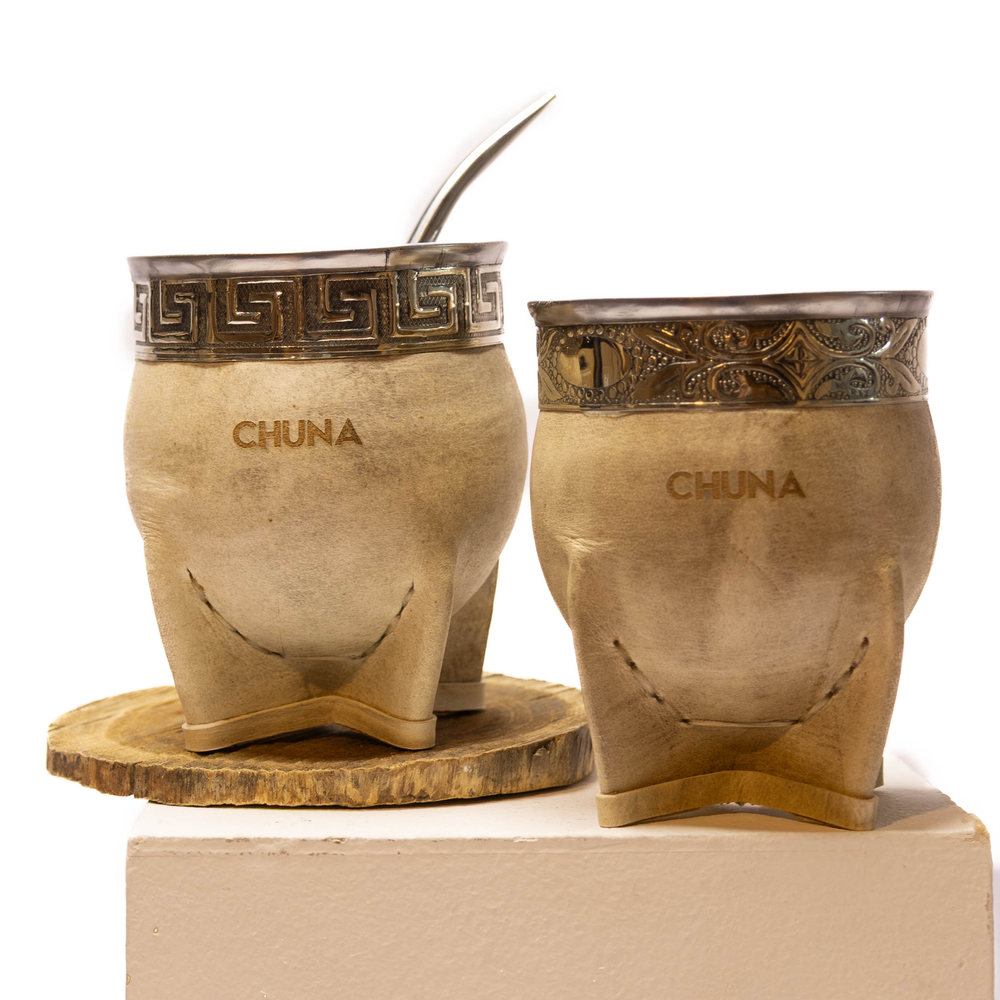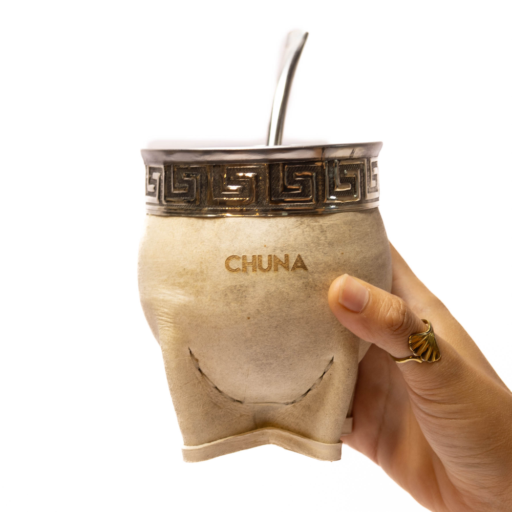 El mate Imperial está fabricado con una base de calabaza de alta calidad, recubierta con cuero crudo que resalta la textura natural del material, y una virola metálica que le otorga un toque elegante y duradero. Su diseño imperial, de mayor tamaño, es ideal para aquellos que buscan un mate robusto, tradicional y cómodo para disfrutar durante largas jornadas de mate. Materiales: Base: Calabaza natural seleccionada con cuidado para garantizar un excelente sabor y conservación de la yerba mate. Recubrimiento exterior: Cuero crudo, con una textura suave al tacto, manteniendo el acabado rústico natural del material, sin tintes artificiales. Virola: Metal de alta resistencia, con un acabado refinado que aporta elegancia y robustez al mate. Características: Diseño Imperial: Forma grande y ergonómica, que facilita el uso y mejora la experiencia de quien lo utiliza. Tamaño: Capacidad superior, con aproximadamente 200-250 ml de volumen, adecuado para cargas más grandes de yerba mate. Color: El color del cuero y la calabaza pueden variar, dado que ambos son materiales naturales y cada unidad es única. El tono exacto del cuero y de la calabaza puede diferir ligeramente entre unidades, ofreciendo una variación estética natural y artesanal.